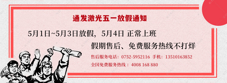 假期預告:通發(fā)激光自2022年5月1日起至5月3日放假三天,期間售后服務、全國免費服務熱線暢通,持續(xù)為大家提供有力的設備使用保障!