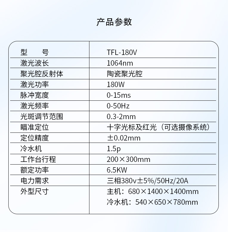 3、激光腔采用漫反射陶瓷反射腔,激光轉換效率高。