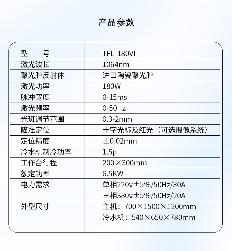 3、激光腔采用漫反射陶瓷反射腔,激光轉換效率高。