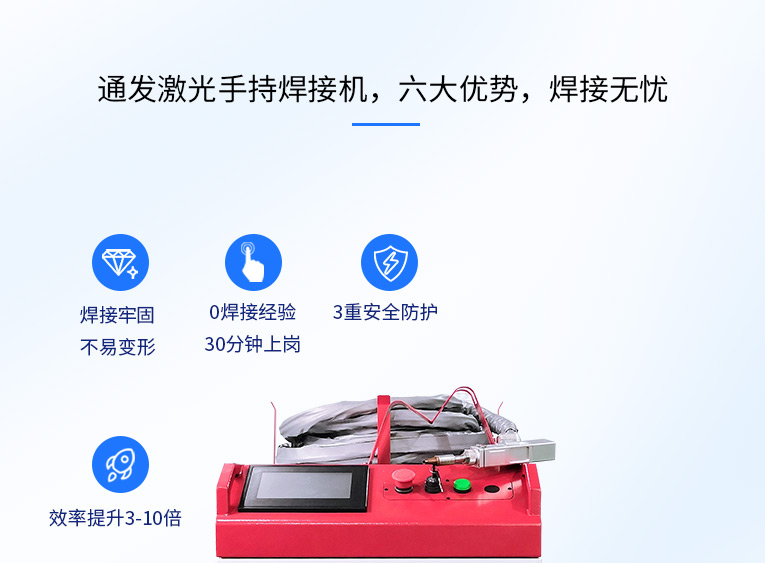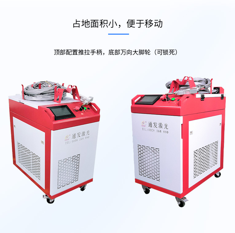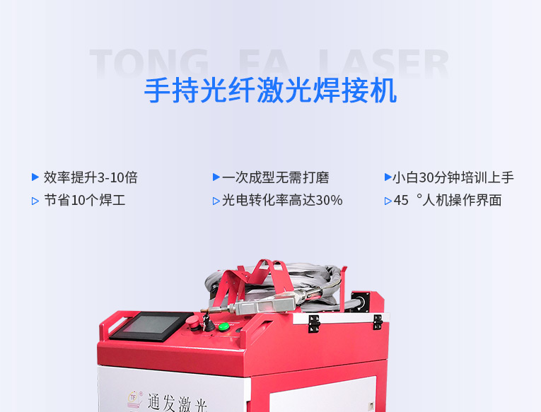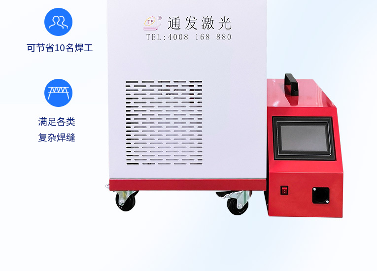 通發(fā)激光一體式手持式激光焊接機(jī),用手持式焊接槍替代以前固定光路,手拿焊接,靈活方便,焊接距離更長,克服工作臺空間的局限性,工件尺寸不統(tǒng)一時(shí)無法自動焊接的情況下使用。主要針對大型工件、固定位置如內(nèi)直角、外直角、平面焊縫焊接、焊接時(shí)熱影響區(qū)域小,變形小、而且焊接深度大,焊接牢固。是遠(yuǎn)距離焊接大工件的較為靈活的全新的焊接工藝。